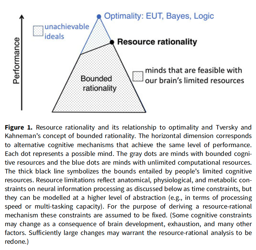 Key Takeaway: The concept of bounded rationality as a constrained optimization problem serves as a foundation for resource-rational analysis, a paradigm for modeling cognitive mechanisms and representations that synthesizes these ideas into a unified framework.